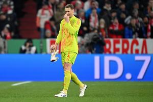 体育资讯4月16日讯 欧冠1/4决赛次回合,拜仁在主场迎战皇马。本场比赛刚刚开场,主队门将诺伊尔就因失误导致丢球,皇马小将居莱尔破门得分。