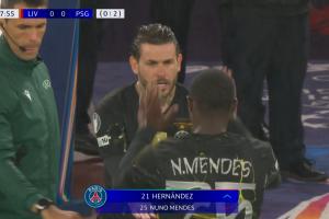 门德斯第38分钟伤退,卢卡斯·埃尔南德斯登场