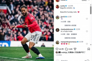 本场比赛库尼亚打进精彩进球,赛后他也在个人社媒晒出本场进球后冲浪庆祝动作照片,配文写道:“美好的周日,红魔球迷们!”